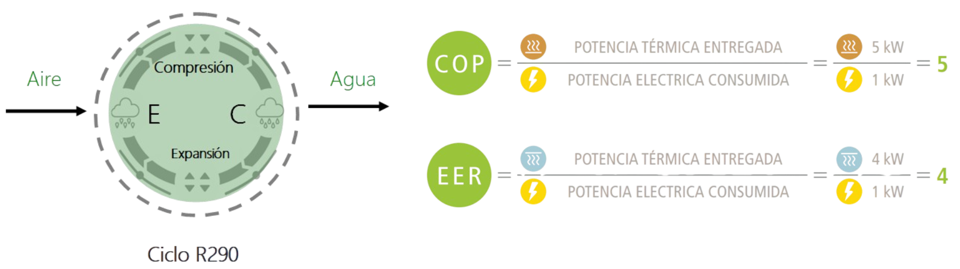 - COP (Coeficiente de Rendimiento): para evaluar la eficiencia en calefacción.